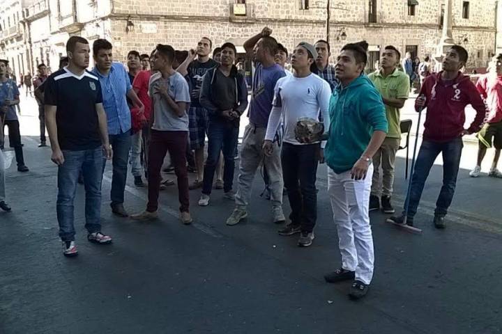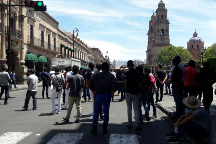 Moradores de la Casa del Estudiante "Nicolaita" tomaron la Avenida Madero, en el Centro Histórico de esta ciudad, para exigir que se les entregara un subsidio para la operación de dicho inmueble y luego de media hora de bloquear la circulación vehicular fueron desalojados.