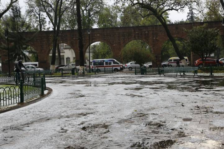 El acontecimiento fue durante la tarde de este miércoles. La grana cayó con intensidad y así cubrió el Acueducto, la Plaza Morelos, el Bosque Cuauhtémo... Ver más...
