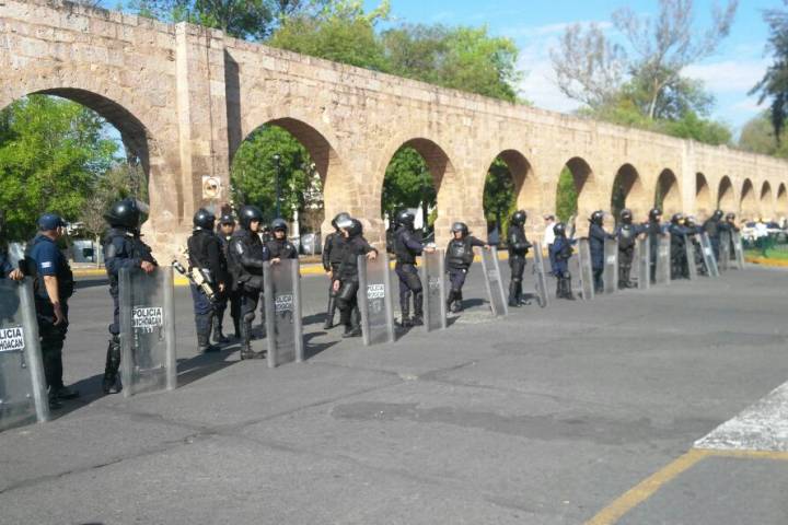 Un contingente numeroso, inició la movilización de la fuente de las Tarascas por la avenida Madero para arribar a la sede del Congreso del Estado.