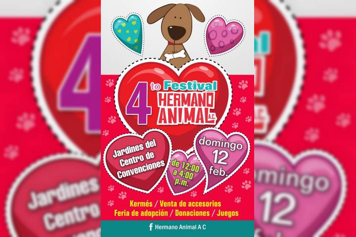 NOTICIAS 08/02/2017Cuarto Festival de adopción en Morelia.Con el fin de promover la adopción de perros y gatos, y con la convicción de que los amigos se adoptan y no se compran la asociación civil Hermano Animal, llevará a cabo su cuarto festival que tendrá lugar en los jardines de Ceconexpo el domingo 12 del presente año de las 12:00 a las 16:00 horas con entrada libre.
