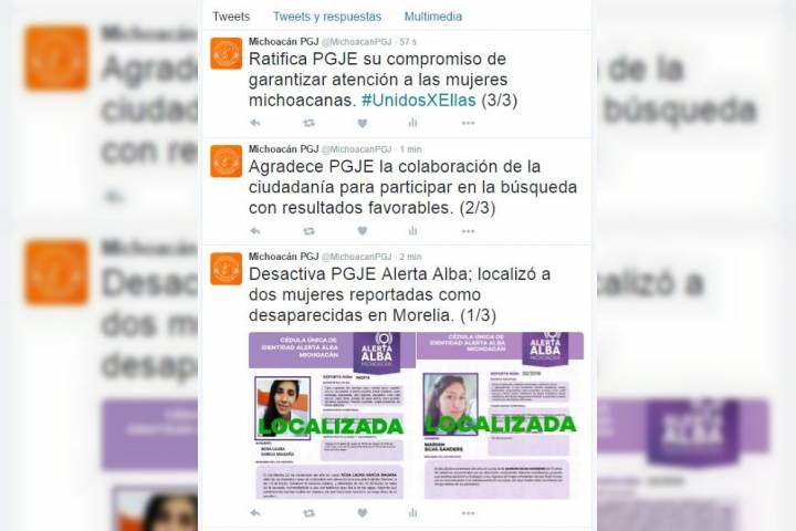 Resultado de acciones emprendidas por la Procuraduría General de justicia del Estado (PGJE) de Michoacán para garantizar acceso a la justicia a las mujeres michoacanas, fueron localizadas dos mujeres, una de ellas menor de edad, que se reportaron el martes pasado como desaparecidas en Morelia.