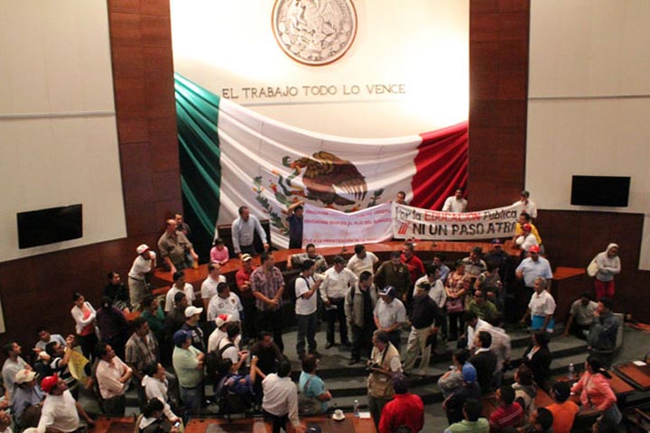 Un grupo de la llamada ala democrática arribo a las instalaciones de la dependencia estatal para desalojar a los trabajadores y posteriormente tomar el edificio, en protesta además contra las leyes secundarias de dicha reforma.