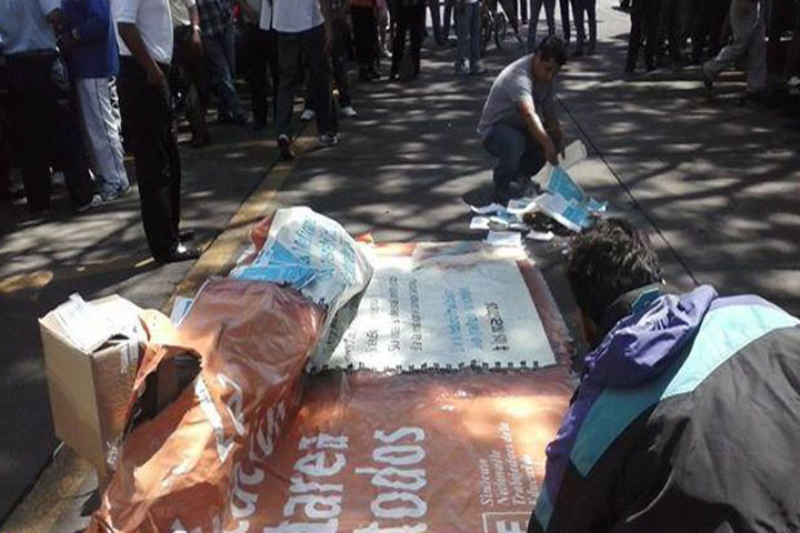 El secretario de Carrera Magisterial de la sección 18 del Sindicato Nacional de Trabajadores de la Educación, Daniel AMBRIZ Mendoza, denunció a través de su cuenta de facebook la quema de material de la prueba ENLACE en el municipio de Zacapu.