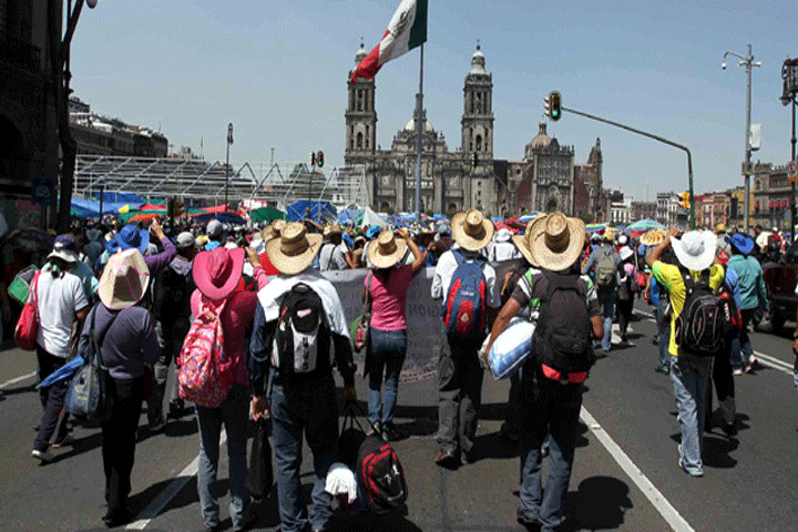 Maestros de la Coordinadora Nacional de Trabajadores de la Educación (CNTE), provenientes de Michoacán, Oaxaca y Guerrero, iniciaron, desde el Zócalo del Distrito Federal, la marcha hacia Los Pinos como protesta por la reforma educativa.