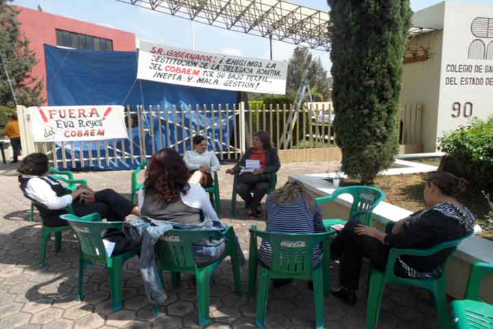 Agremiados al Sindicato del Colegio de Bachilleres de Michoacán (COBAEM) exigen la destitución de la delegada Administrativa, Eva Reyes Rodríguez, ya que aseguran ha violentado acuerdos establecidos, además de retrasar el pago de diversas prestaciones.