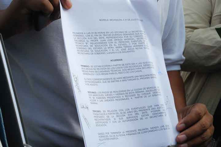 La Coordinadora Nacional de Trabajadores de la Educación (CNTE) anunció los acuerdos a los que se llegaron el día de ayer con la Secretaría de Gobierno en relación al pago de eventuales, los cuales consisten primero en el pago completo y total en un primer paquete de mil 196 trabajadores que cobrarán este miércoles, mientras que para el resto de trabajadores se evalúa la posibilidad del cobro a más tardar el sábado.