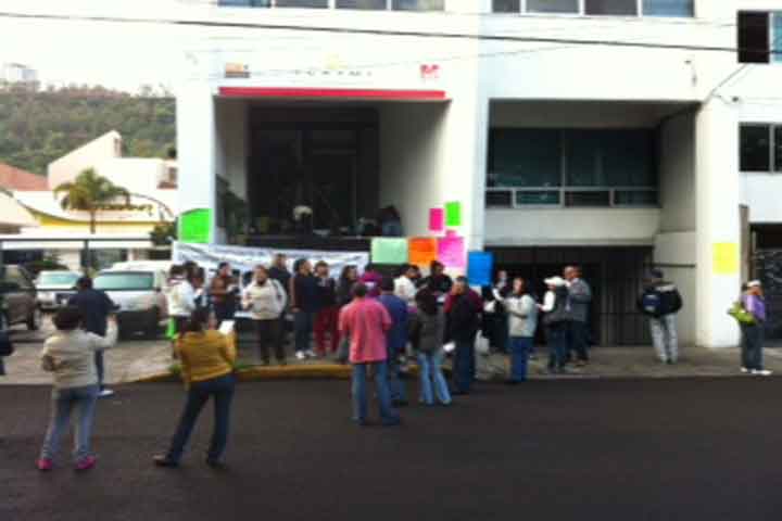 Desde las 8 de la mañana los trabajadores bloquearon todos los accesos de la dependencia estatal como medida de presión para que las autoridades estatales cumplan con el finiquito pendiente.