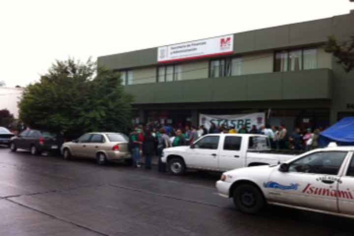 Debido a la falta de pagos de pensiones, integrantes del Sindicato al Servicio del Poder Ejecutivo (STASPE) tomaron las instalaciones de la Secretaría de Administración y Finanzas ubicada en la Ventura Puente.