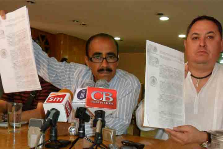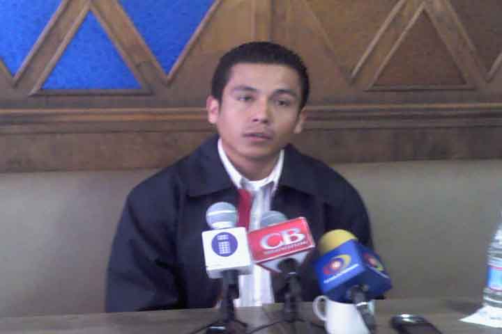 NOTICIAS 19/06/2012Denuncia secretario de telebachillerato haber sido interceptado luego de haber levantado plantón fuera de Casa de GobiernoEl secretario general del Sindicato de Telebachillerato, Claudio Tomás Ruiz, negó que detrás del movimiento que sostienen desde este lunes hubiera algún partido político. Lo anterior en rueda de prensa en la que afirmó que la madrugada de este martes fue interceptado por una camioneta que le cerró el paso.