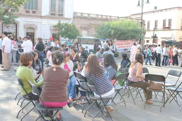 NOTICIAS 18/06/2012Trabajadores de telebachillerato se manifiestan en casa de gobierno; bloquean circulación vehícularTrabajadores de los telebachilleratos marcharon esta mañana desde la salida a Pátzcuaro por el libramiento sur hasta llegar a Casa de Gobierno con el objetivo de manifestar su inconformidad por la falta de derechos y prestaciones de ley.