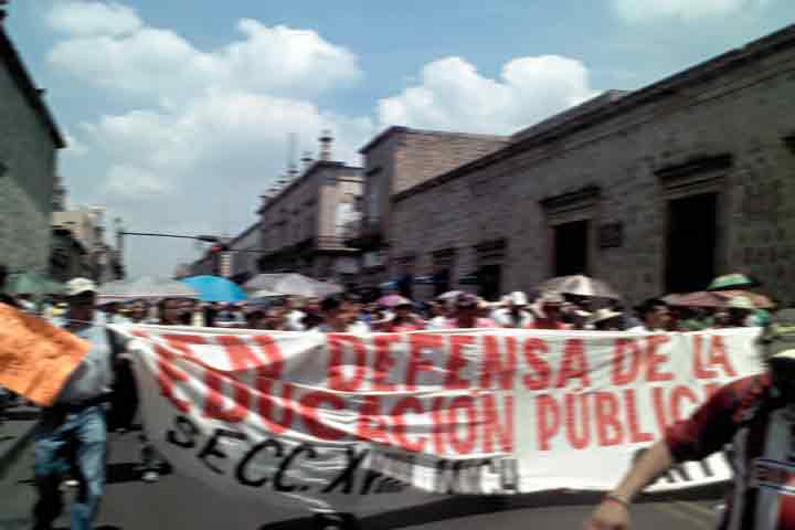 NOTICIAS 11/06/2012Democráticos anuncian marcha para este martes y plantón indefinido en el centro.Con la advertencia de un plantón indefinido en el primer cuadro de la ciudad, la sección XVIII del CNTE anunció una nueva marcha para este martes a las 10 de la mañana desde los cuatro puntos cardinales de Morelia (Casa de gobierno, Técnologico de Morelia, Tres Puentes y la Plaza Morelos).