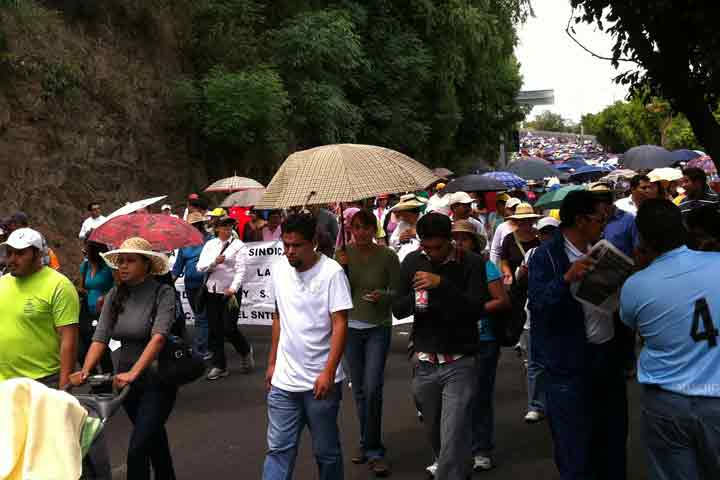 NOTICIAS 29/03/2012Inicia marcha del SNTE, llegan a la Calzada JuárezManifestantes de la fracción democrática de la Sección XVIII del Sindicato Nacional de Trabajadores de la Educación, iniciaron marcha de casa de gobierno los docentes en este momento llegan a la Calzada Juárez cierran la vialidad, el frente de la marcha llega a la Av. Solidaridad mientras tanto el final se encuentra en el libramiento sur y seguirán al centro de la ciudad.