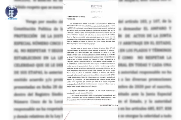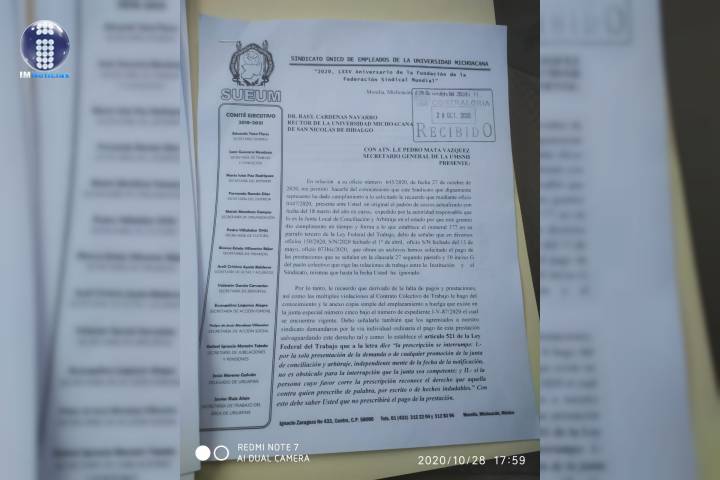 NOTICIAS 18/10/2020SUEUM exige que UMSNH cumpla con laudo a favor de trabajadores