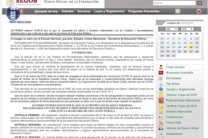 NOTICIAS 30/03/2020Pago a SUEUM, detenido por SEP, derivado de #covid-19Tras el anuncio de la SecretarÃa de Educación Pública de cancelar las actividades no esenciales; el SUEUM es uno de los afectados, luego de que en dÃas recientes firmara la actualización del régimen de pensiones y jubilaciones, condición para acceder a recursos extraordinarios para pago de salarios y prestaciones legales del mes de diciembre de 2019, en tanto, no podrá acceder a los recursos hasta que no pase la contingencia sanitaria.