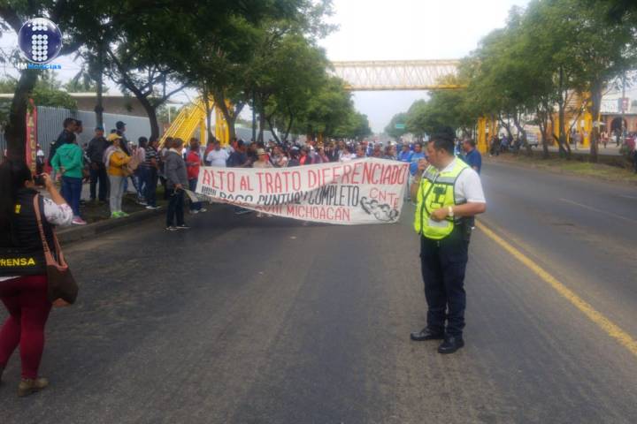 Miembros del Sindicato Nacional de Trabajadores de la Educación cumplen una semana de manifestaciones debido a adeudos que el gobierno del estado tiene con ellos.
