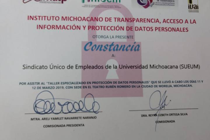 Fue en mayo del 2018 cuando el SUEUM recibió una calificación del 96.98 por ciento por parte del Instituto Michoacano de Acceso a la Información, Transparencia y Protección de Datos Personales (IMAIP), mantiene activa la página de transparencia y ha asistido a los talleres correspondientes.