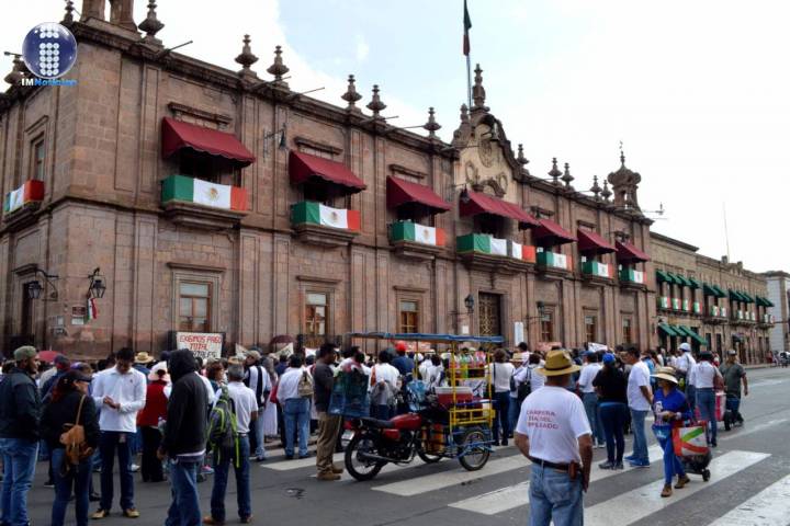 Maestros agremiados al Sindicato Nacional de Trabajadores de la Educación se movilizaron por distintos puntos de la ciudad de Morelia como reclamo a pagos atrasados, según señaló el dirigente de la delegación D-III-6, Manuel Macedo Negrete.