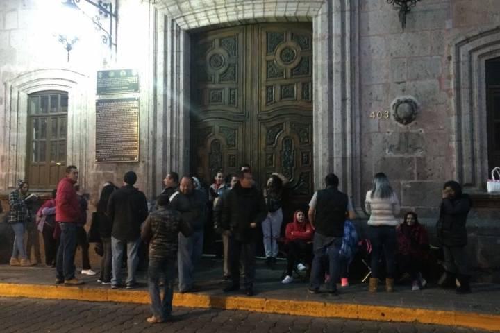 Ante la falta de pagos del aguinaldo y prima vacacional, sindicalizados del Icatimi y Colegio de Bachilleres se manifiestan desde las 7 de la mañana en el ayuntamiento de Morelia, donde además paralizaron la circulación vehicular.