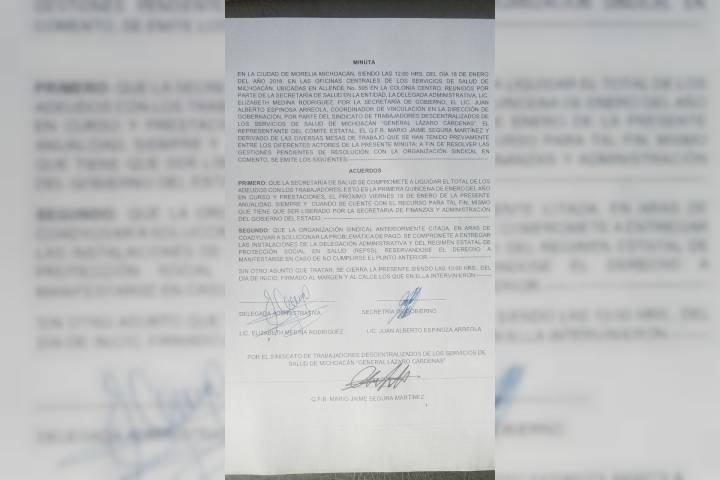 NOTICIAS 18/01/2018Sindicato desentralizado de Salud confÃa en que queden saldados los adeudosComo un acto de buena fe, el Sindicato de Trabajadores Descentralizados de los Servicios de Salud de Michoacán "General Lázaro Cárdenas", retiró la toma que mantenÃa desde el dÃa de hoy en las oficinas de la Delegación Administrativa de la Secretaria de Salud de Michoacán (SSM) ubicadas en la avenida Enrique RamÃrez, asà como las oficinas del Seguro Popular de la avenida Lázaro Cárdenas.