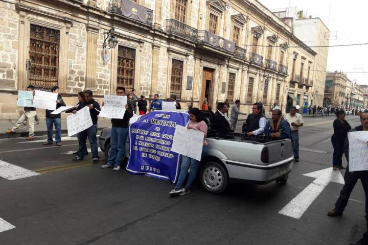 El Sindicato de Profesores de la Universidsd Michiacana de San Nicolás de Hidalgo, se manifestó este jueves en Casa de Gobierno, en exigencia de que se atiendan las demandas ante el retraso en los pagos de quincenas por parte de la Universidad.