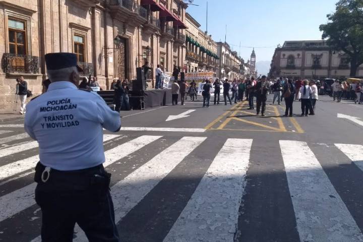 El despliegue de elementos de la Policía Michoacán y de Tránsito y Movilidad tuvo como objetivo vigilar la movilización hasta su arribo al primer cuadro de la ciudad.