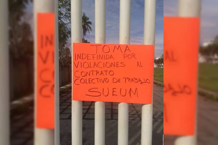 Al 100 por ciento cumplieron los sueumistas con el paro laboral y toma de las instalaciones universitarias en exigencia de la reparación de violaciones contractuales.