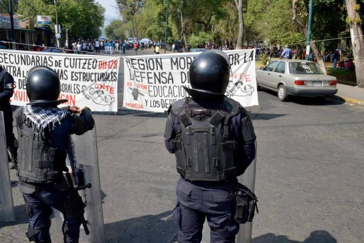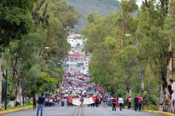 Como parte de su jornada de lucha, integrantes de la Sección XVIII de la Coordinadora Nacional de Trabajadores de la Educación (CNTE) en Michoacán, se movilizaron este martes, para fortalecer el plantón que mantienen en la Secretaria de Finanzas, además de que marcharon por las calles de la capital.
