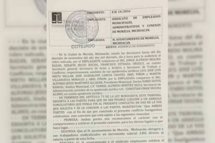 Después de tener una reunión de advenimiento en las oficinas del Tribunal de Conciliación y Arbitraje, ubicadas en Acueducto, entre abogados del Ayuntamiento de Morelia y el Sindicato de Empleados Municipales, Administrativos y Conexos de Morelia (SEMACM), el estallamiento a huelga se pospone para el próximo 15 de marzo.