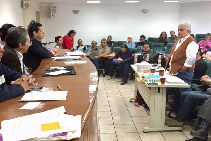 El secretario general del SUEUM, Eduardo Tena Flores comentó con los funcionarios presentes el documento que recibió del rector Medardo Serna González invitando a tocar el tema "cuando creyera prudente".