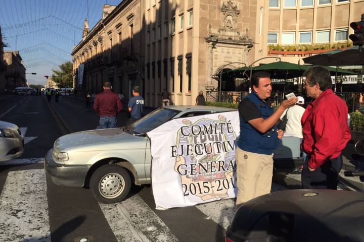 Como parte de la protesta, los sindicalizados bloquean la avenida Madero en el tramo de Guillermo Prieto a Galeana, donde han advertido se mantendrán hasta las 14 horas de este martes.