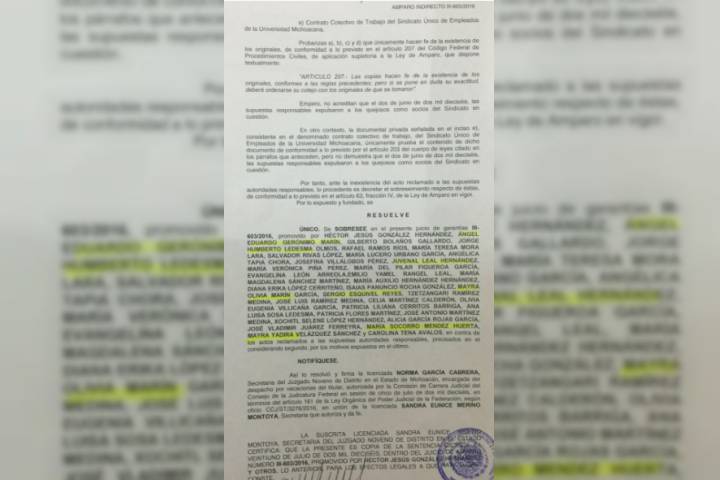 Niegan amparo al llamado "Frente Único, todos somos SUEUM", bajo el número 603/2016-III en el Juzgado Noveno en el Distrito del Estado, el cual interpusieron en contra de las "supuestas" expulsiones del Sindicato Único de Empleados de la Universidad Michoacana (SUEUM).
