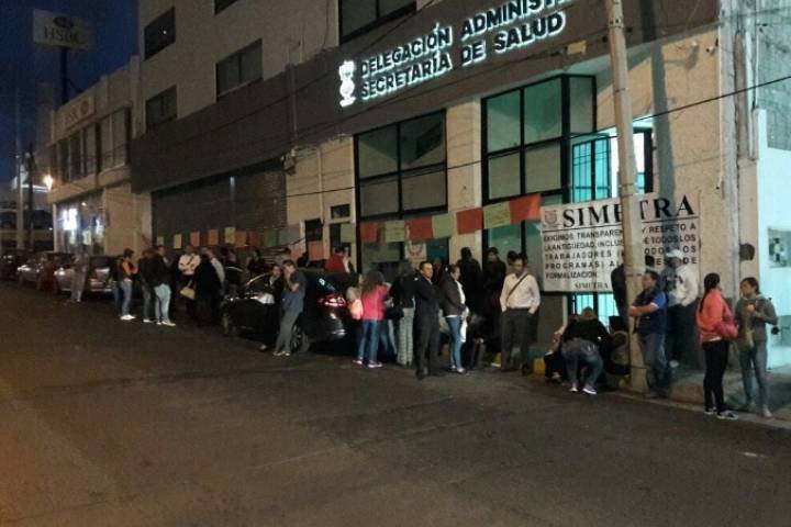 Ante la falta de respuesta por parte de Gobierno del Estado, de nueva cuenta integrantes del Sindicato de Trabajadores Descentralizado de los Servicios de Salud en Michoacán (STDSSM) protestan afuera de Casa de Gobierno.