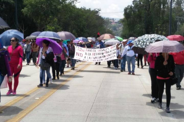 Los agremiados al magisterio democrático protestan bajo... Ver más...