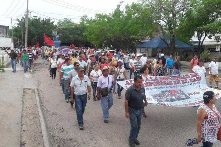 Un contingente de maestros de la Coordinadora Nacional de Trabajadores de la Educación (CNTE), realizaron una marcha la tarde de este jueves en la tenencia de Guacamayas aunado al plantón indefinido que tienen en sobre las vías del tren, también esta ciudad portuaria.