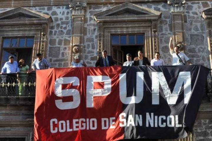 NOTICIAS 29/02/2016A puertas abiertas, inicia la huelga del SPUM A las 18 horas el Sindicato de Profesores de la Universidad Michoacana instaló las banderas rojinegras en las escuelas y facultades de la Casa de Hidalgo; sin embargo las puertas de las instalaciones nicoaitas permanecerán de puertas abiertas al personal administrativo y la comunidad estudiantil.