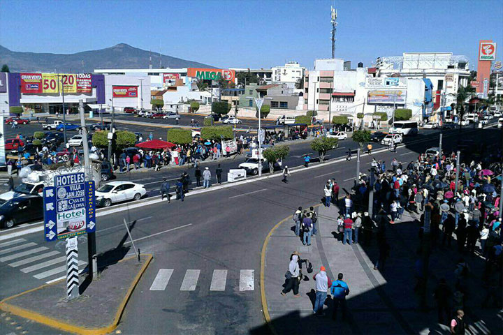Los sindicalizados que se congregaron en la calzada La Huerta partieron minutos antes de las 11 horas con rumbo al primer cuadro de la ciudad. A su paso, los manifestantes han comenzado a causar estragos en la circulación vehicular.