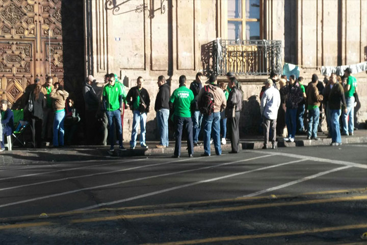 Reunidos en la Plaza Morelos, los sindicalizados han cerrado la circulación de la avenida Acueducto para iniciar en breve la movilización.
