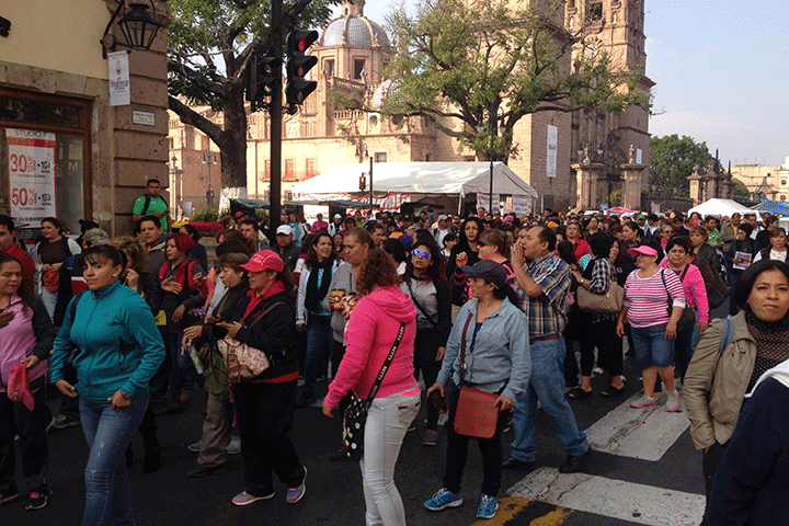 Ante la falta de atención de parte de la autoridad estatal y de parte del Secretario de Salud, el Sindicato Único de Trabajadores del Organismo Público Descentralizado de Servicios de Salud de Michoacán (SUTOPDSSM) marchan por la avenida Madero.