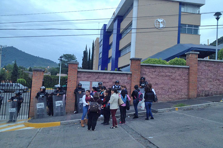 los agremiados a la Coordinadora Nacional de Trabajadores de la Educación (CNTE) se retiraron de la Universidad Interamericana para el Desarrollo que se ubica en la avenida Lázaro Cárdenas, en donde al interior se encuentran cerca de 100 maestros realizando la evaluación docente.