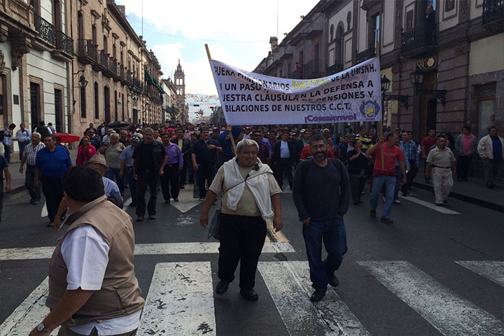 A la cabeza de la movilización se encuentra el Sindicato Único de Empleados de la Universidad Michoacana (SUEUM), que ha am... Ver más...