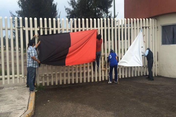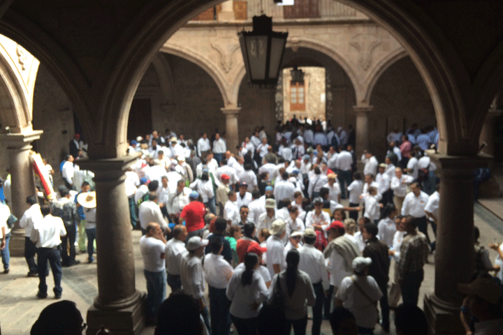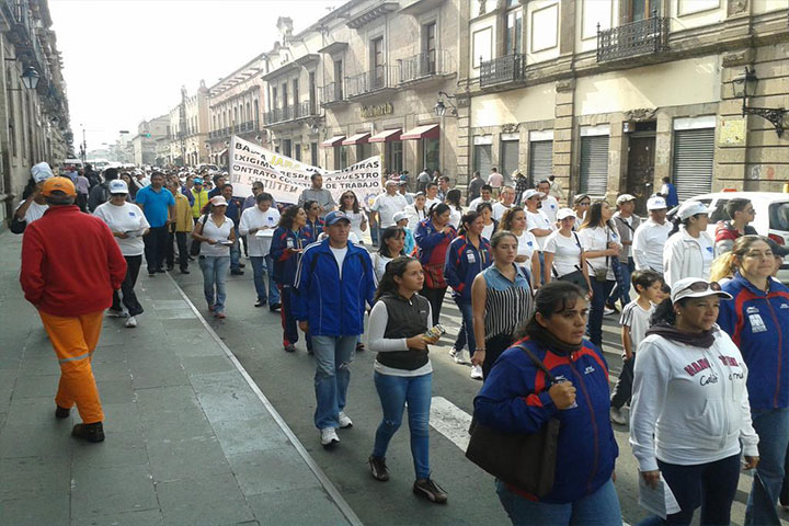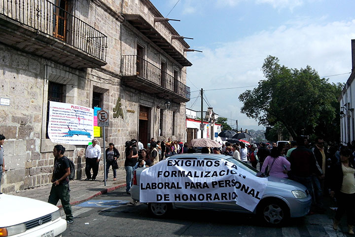 Previamente los manifestantes marcharon desde la fuente de las Tarascas, en la exigencia de ser atendidos de inmediato por el Ejecutivo Estatal, Salvador Jara Guerrero, a fin de que intervenga en el conflicto que mantiene la huelga en la institución desde hace 44 días.