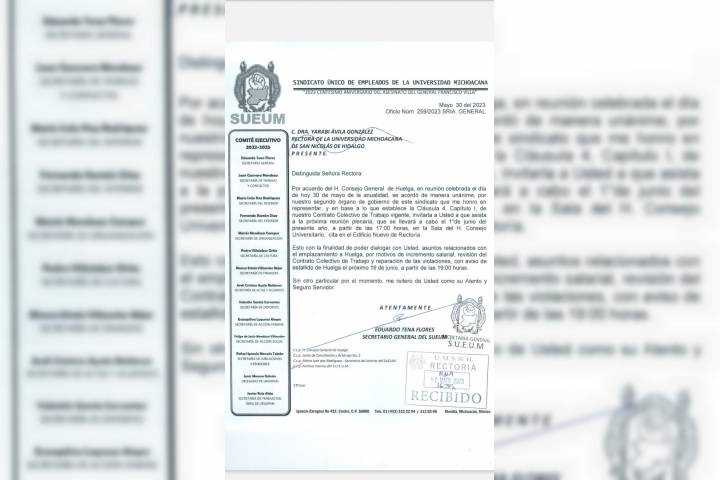 NOTICIAS 31/05/2023Aprueba Consejo General de Huelga del SUEUM llamar a negociaciones a rectora nicolaita