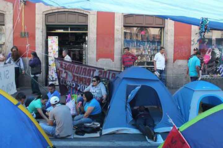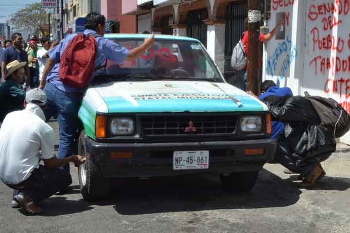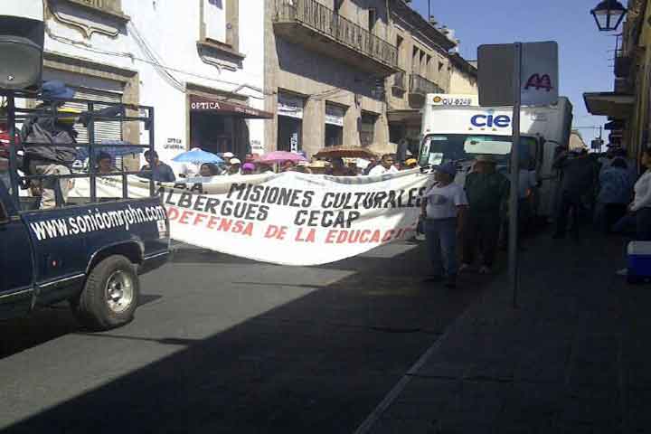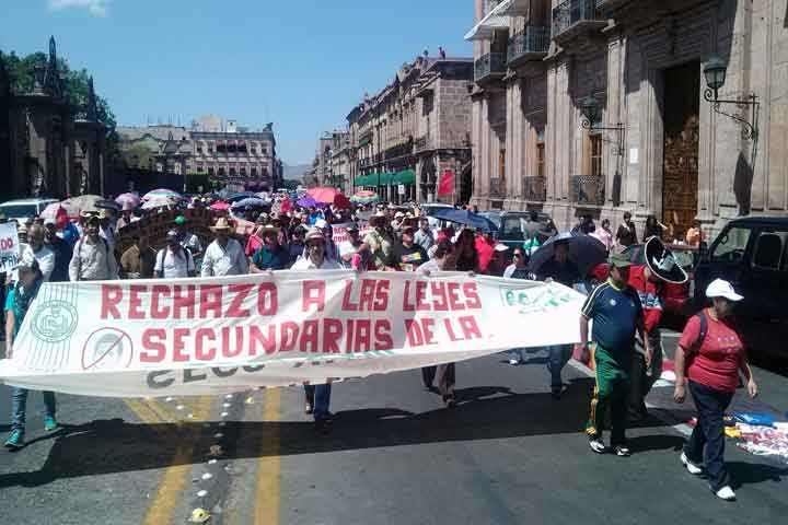 Desde el plantón que mantienen en el primer cuadro de la ciudad, un grupo de integrantes de la Coordinadora Nacional de Trabajadores de la Educación partieron con rumbo a Casa de Gobierno para manifestarse.
