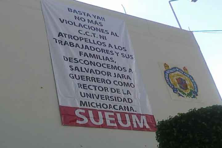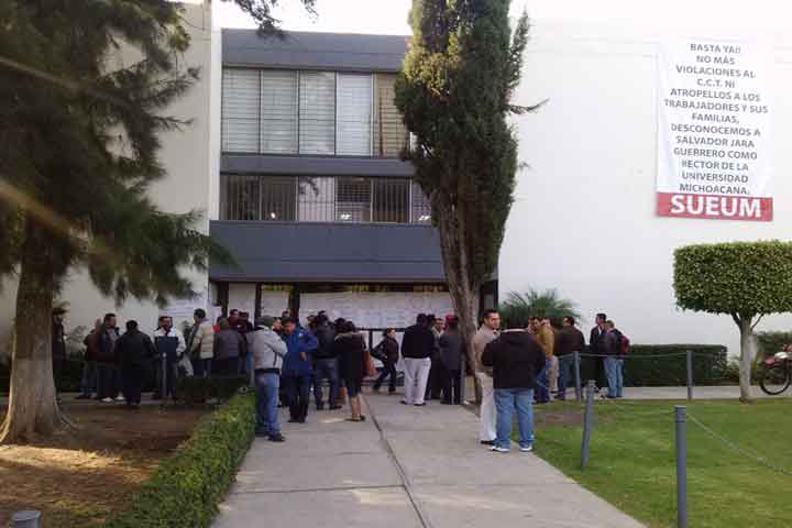 La toma del edificio de Rectoría de la Universidad Michoacana (UMSNH) se acordó entre los miembros del Consejo General de Huelga del SUEUM para exigir el pleno respeto al Contrato Colectivo de Trabajo luego de que no se liquidaran a tiempo las quincenas y prestaciones de fin de año, justifica Moisés Mendoza Campos, secretario de Organización del Sindicato Único de Empleados (SUEUM).