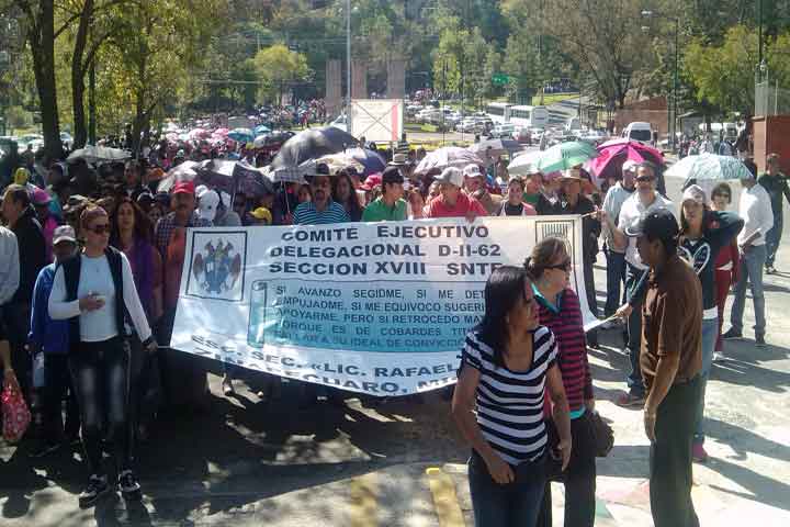 Arrancó la marcha de la sección XVIII de la Coordinadora Nacional de Trabajadores de la Educación (CNTE). El contingente de maestros partió de Casa de Gobierno al primer cuadro de la ciudad.