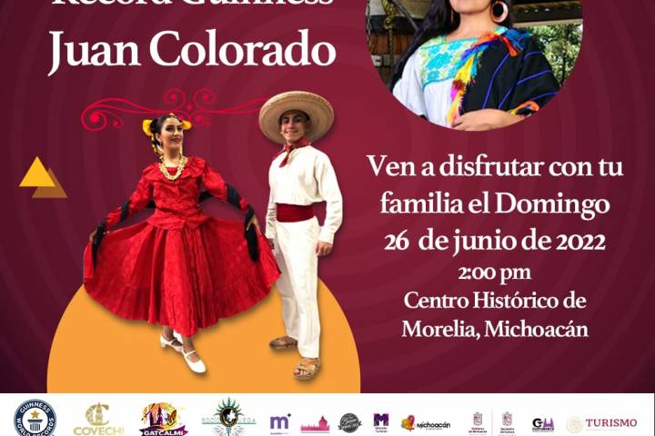 NOTICIAS 21/06/2022Con "Juan Colorado", irá Michoacán por Récord Guiness de baile Al ritmo del "Juan Colorado" y con una estimación de dos mil participantes, el próximo 26 de junio, Michoacán buscará establecer el Record Guiness del mayor grupo de personas ejecutando una misma coreografía de baile folclórico mexicano.