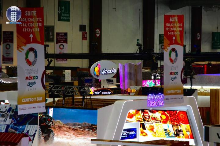 Además de su atractivo visual, el estand de Michoacán en el Tianguis Turístico de México es un espacio complejo en el que se planearon áreas para negocios, venta, reuniones, exposición artesanal, y cabina multisensorial, entre otros elementos.