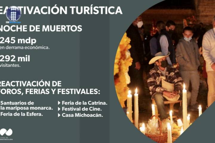NOTICIAS 10/01/2022Cien días: primeros signos de recuperación turísticaRoberto Monroy García, Secretario de Turismo del Estado, recordó que Michoacán vivió en esos primeros cien días, una importante ventana de descenso de contagios de la pandemia, que permitió reactivar eventos tradicionales y de promoción turística.