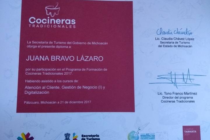 Orgullo Michoacano los y las Cocineras Tradicionales quienes con su esencia y cultura le dan valor a michoacan, afirmó la secretaria de Turismo Estatal, Claudia Chávez López. Durante la entrega de diplomas a los y las Cocineras Tradicionales que asistieron a las diferentes capacitaciones que se impartieron durante el 2017, la titular de la política turística del Estado, les reconoció el compromiso que tienen con el posicionamiento de l...