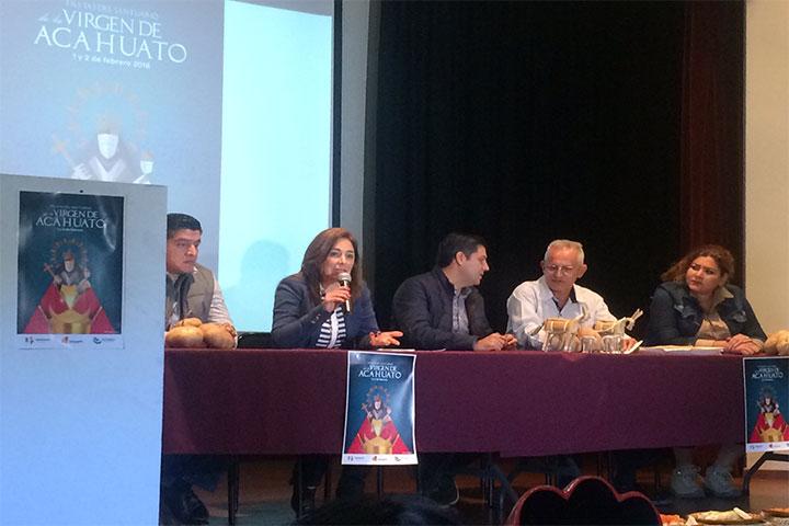 NOTICIAS 18/01/2016La Virgen de Acahuato, un nuevo producto turísticoCon la presencia del presidente municipal de Apatzingán, Cesar Chávez, y del Padre Jesús Álvarez, encargado de la iglesia de la Virgen se anunció la fiesta de Acahuato.